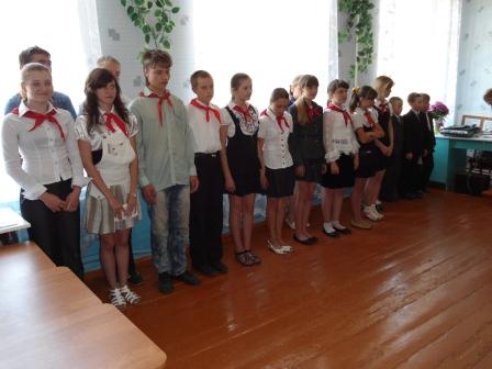 Сегодня, в юбилей пионерской организации, в нашей школе принимали в пионеры учеников 4 класса. Были гости, депутаты районого Совета народных депутатов: Лысков Антон Юрьевич и Волков Сергей Анатольевич. С подарками в гостях были: 2 секретарь Богучарского отделения КПРФ Резников Александр Петрович и внештатный корреспондент газеты "За возрождение" Комов Сергей Иванович.